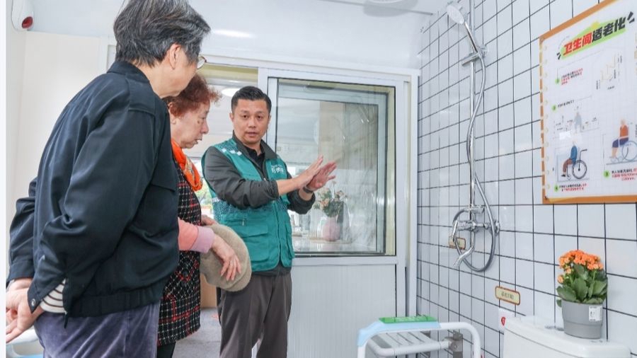 卫生间是居家跌倒风险最高的区域之一,“老百姓的感受在哪方面最强烈,我们就要加强这方面的服务。”街道服务办工作人员表示。为此,本次直通车特别设置“安心无忧卫浴体验间”,通过全方位扶手系统、防滑与报警保障等板块,集中展示如何通过“浴改淋”改造,将卫浴空间变得安全无忧。