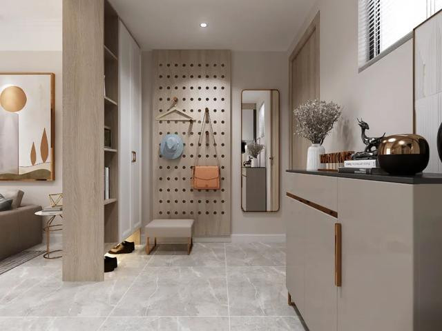 然而现实是——洞洞板不仅仅可以作为装饰墙,还能充当一整面墙的挂钩,比如玄关区域的墙面装上洞洞板,回家后钥匙、包包、雨伞等物品,全都可以挂在这个洞洞板上,能提供强大的收纳功能。