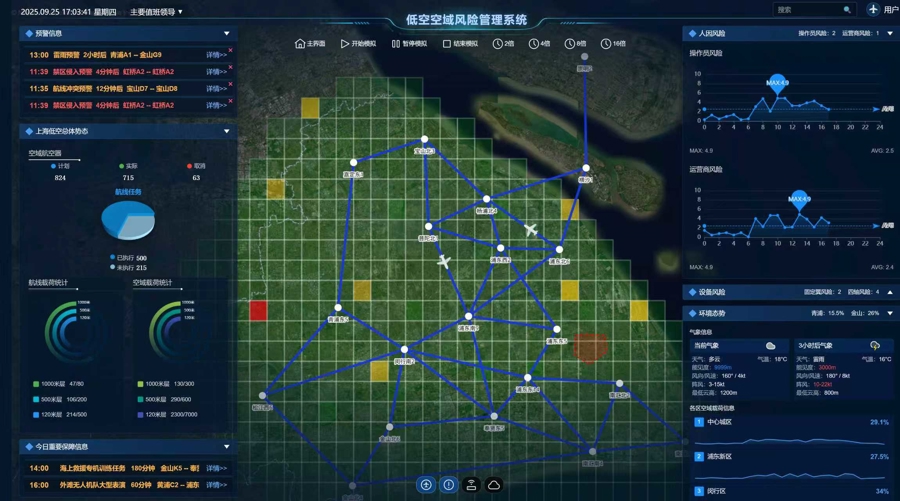 “过去我们监听飞行员对话,现在我们要‘听懂’无人机的‘心跳’。”公司负责人蒋超进一步介绍,“通过整合地理信息、气象数据、电磁频谱等多源信息,我们的低空安全评估平台能提前预警航线冲突、识别电磁干扰,连无人机电池异常都能‘闻’出来。”