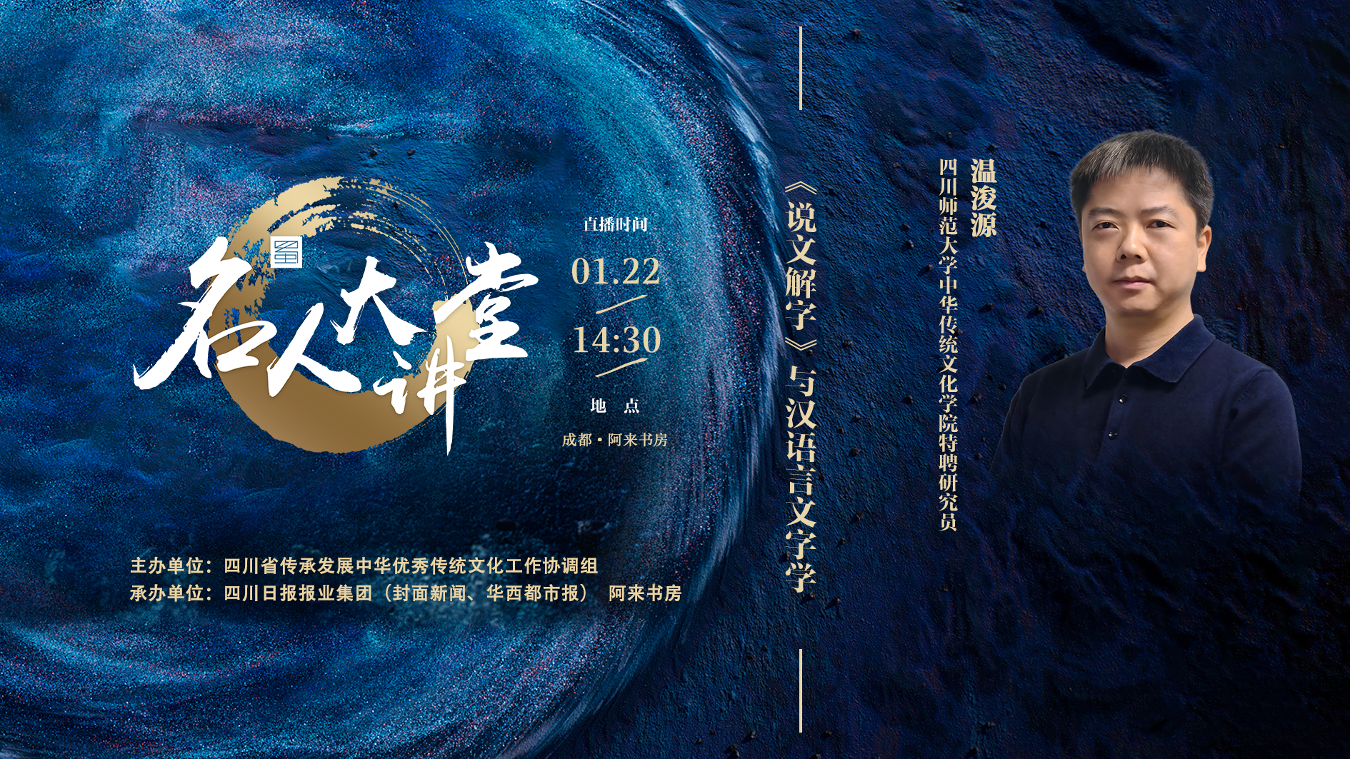 1月22日下午两点半,四川师范大学中华传统文化学院特聘研究员温浚源将做客2025名人大讲堂“汉字源流”季,在成都阿来书房开讲,为现场观众以及线上网友带来题为《〈说文解字〉与汉语言文字学》的讲座,带领听众从许慎的生平与时代背景、《说文解字》的内容概略和核心特色以及研读本书的路径等视角入手,深入认识这部开创性的文字学经典,理解它如何成为汉语言文字学的奠基之作,成为中华文明传承的重要载体,并在新时代继续发挥其文化价值。