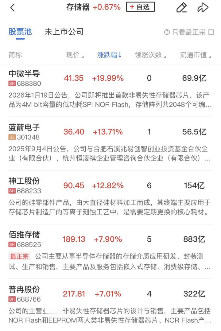 存储芯片概念反复活跃,中微半导20CM涨停,普冉股份、佰维存储再创新高,华海诚科、国芯科技、朗科科技、通富微电、澜起科技等个股涨幅居前。