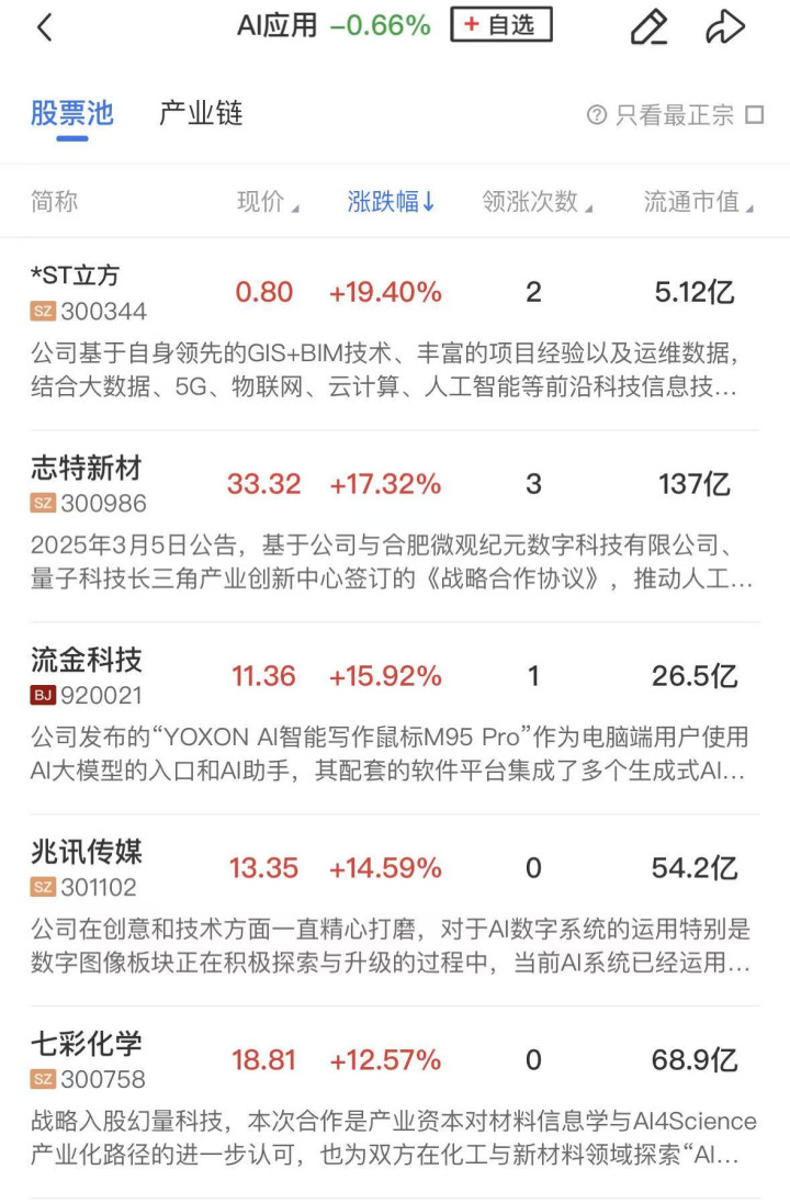 AI应用端展开反弹,佳云科技、粤传媒、浙文互联、天地在线涨停,核心标的蓝色光标同样涨超6%。